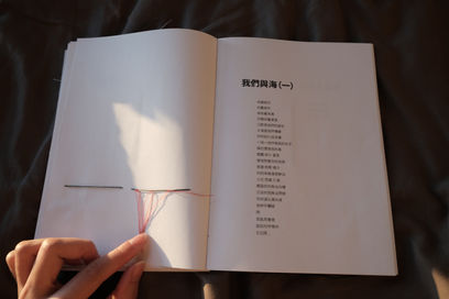 A poetry collection contains 55 poems about Hong Kong, land, and my growth, as well as 28 threaded illustrations. As each threaded illustration is double-sided, I intentionally left blank pages between the poems so that readers can correspond one side of the threaded illustration while reading, and the reverse side corresponds to another poem.